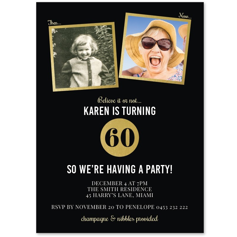 The perfect Photo Invitation for any Birthday celebration. Customise online in minutes for a 21st, 30th, 50th or a 80th. Simple upload your images and our graphic designer will perfect your text alignment before printing onto your choice of quality cardstock.