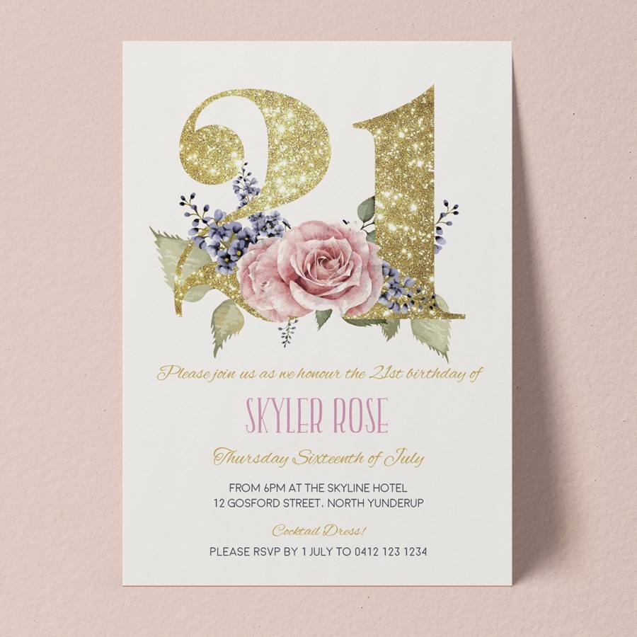 Satisfaction guaranteed and quick delivery! Easily personalise these Stunning 21st Birthday Invitations online in minutes. Your Cards will be printed onto high quality thick cardstock using the best in print technology. Proudly 100% Australian.