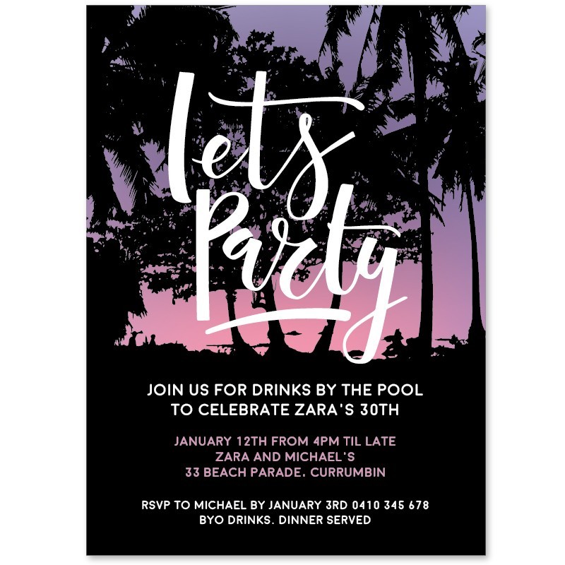 Editable Party Invitations ordered online in minutes. Printed onto quality cardstock and shipped quickly in Australia. Satisfaction Guaranteed.