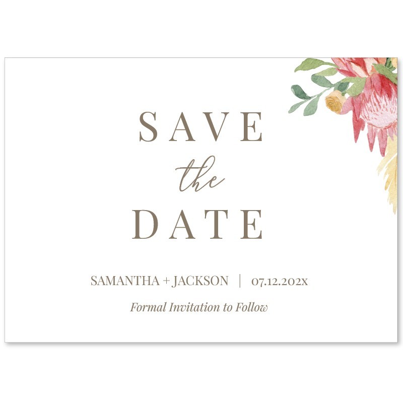 Featuring subtle floral elements and modern typography, these save the date cards are the perfect way to announce your big day, and ensure your guests have locked the date into their calendars.