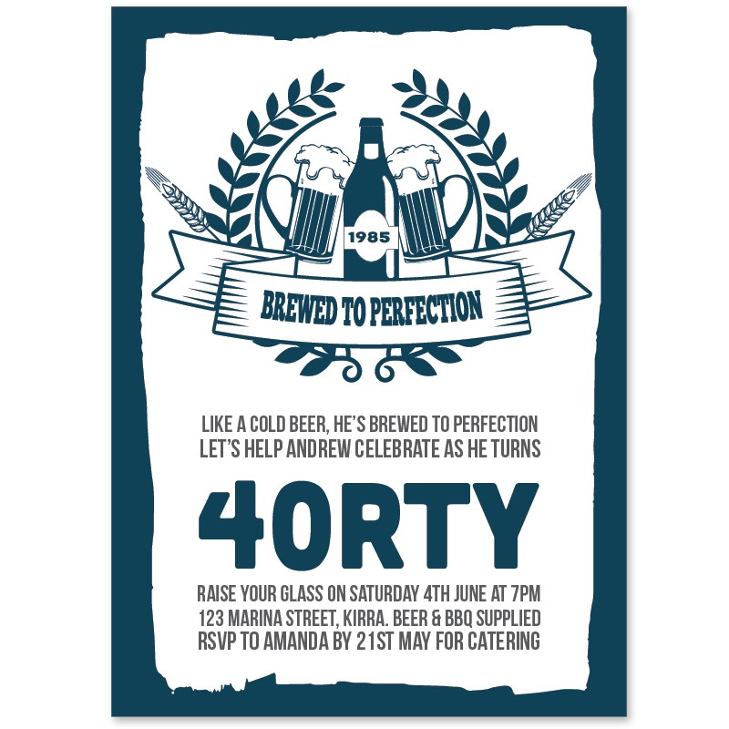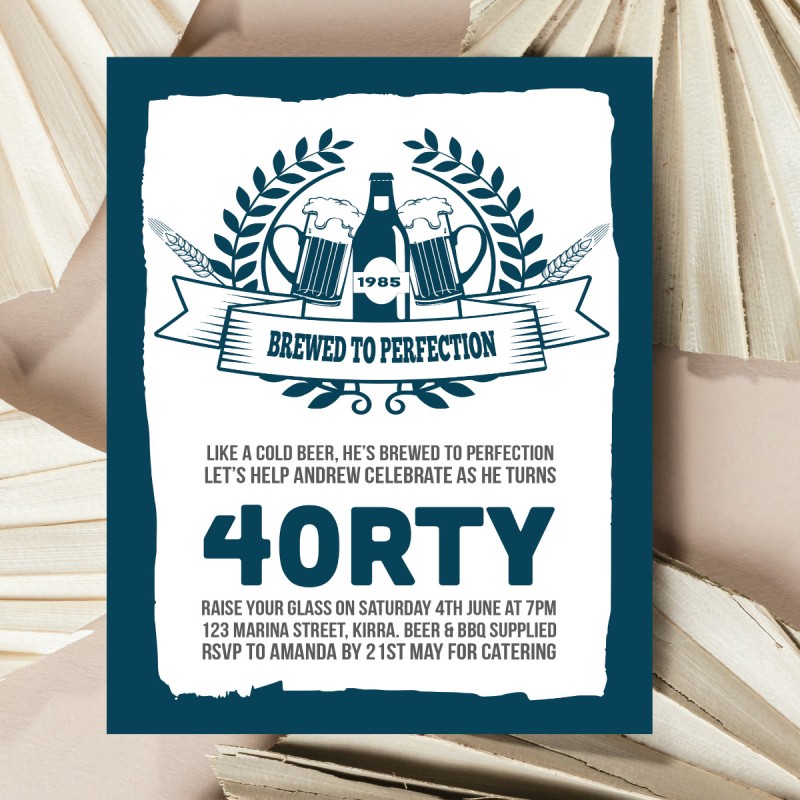 Organising a Birthday Party should be fun, and at Paper Divas we make it super easy to organise Fun Birthday Invitations. Use our online customisation tool to edit the wording of these beer themed Invitations to suit any Birthday Celebration - 30th, 50th, 40th, 21st etc. Our design team will then perfect your aligment, print your cards onto your choice of thick cardstock and ship quickly!