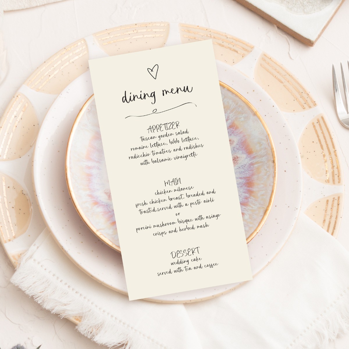 Beautiful Printed Wedding Menus by Paper Divas. Simply personalise online in minutes and our team of graphic designers will perfect alignment before printing onto your choice of quality cardstock.