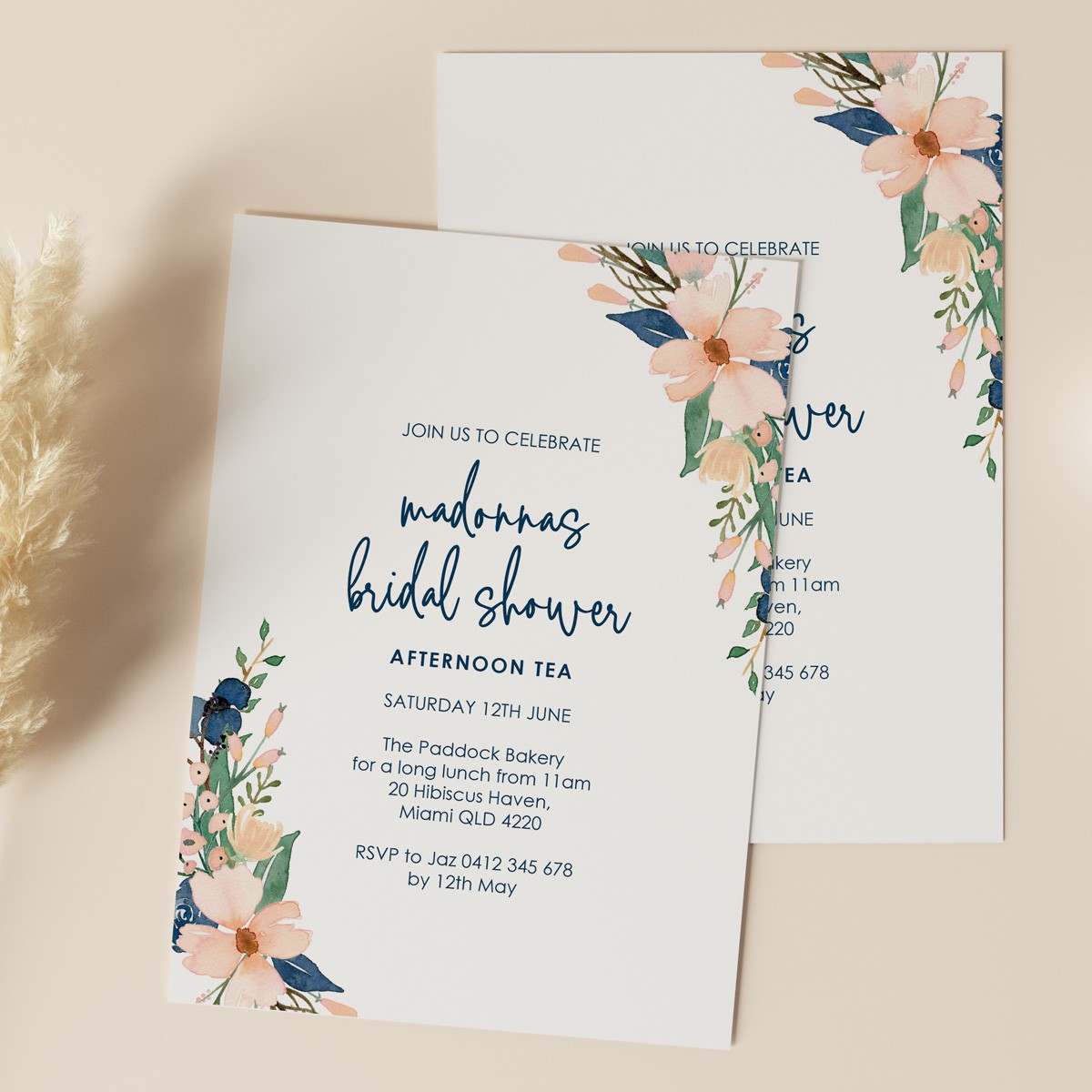 Featuring a delicate blue and pink floral design these Invitations can be personalised easily for any celebration.