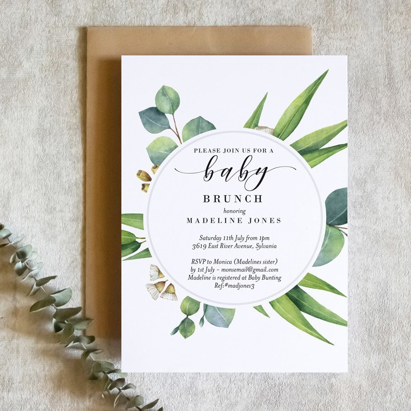 Featuring subtle eucalyptus watercolour elements, your beautiful Baby Shower Invitations will be customized to perfection by our team of designers. High quality printing, satisfaction guaranteed and quick delivery!