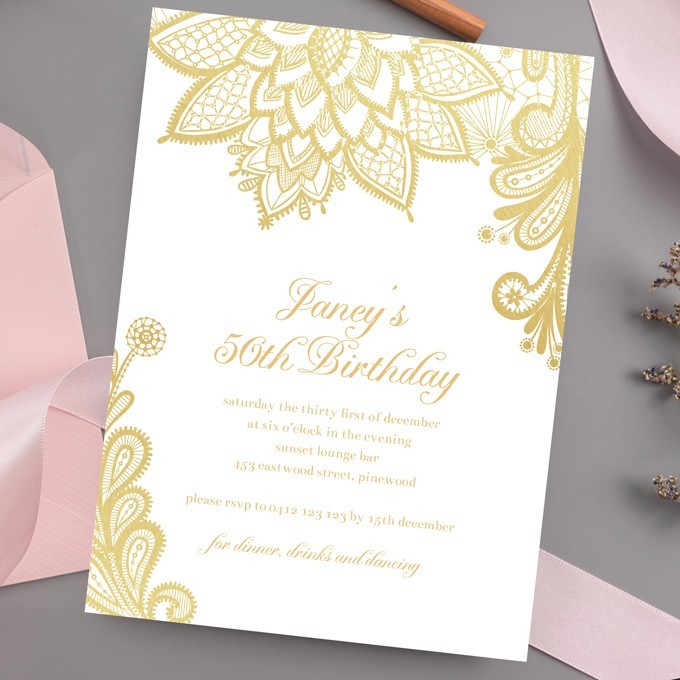 Organising a Birthday Party should be fun, and at Paper Divas we make it super easy to organise Beautiful Birthday Invitations. Use our online customisation tool to edit the wording of these elegant Invitations to suit any Birthday Celebration - 30th, 50th, 80th etc. Our design team will then perfect your aligment, print your cards onto your choice of thick cardstock and ship quickly!
