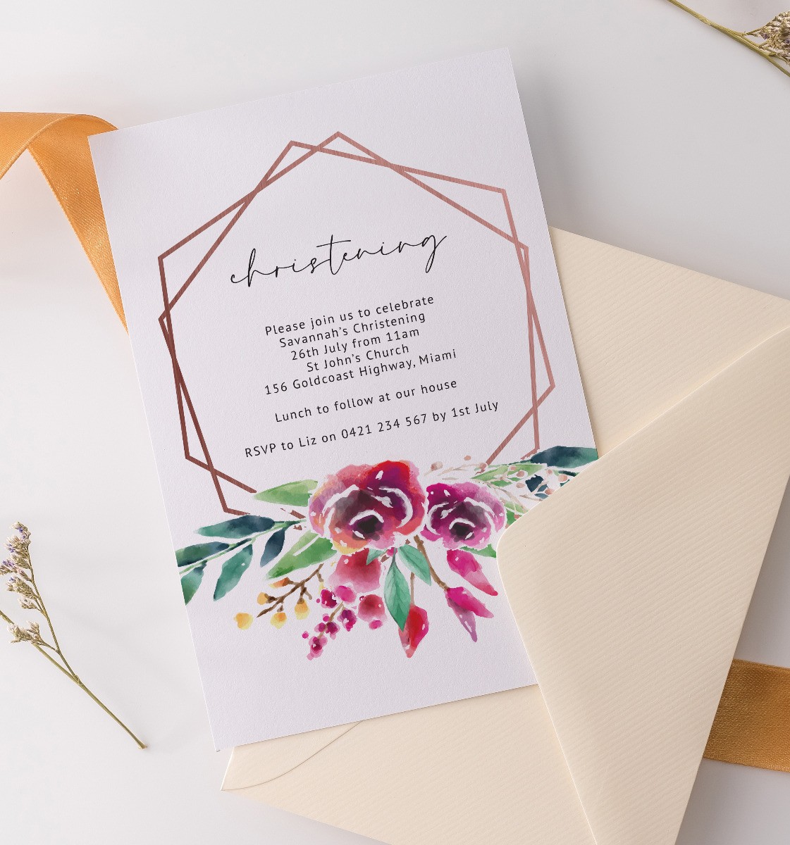 Beautiful Christening Invitations easily personalised online in minutes. Printed onto your choice of quality cardstocks.