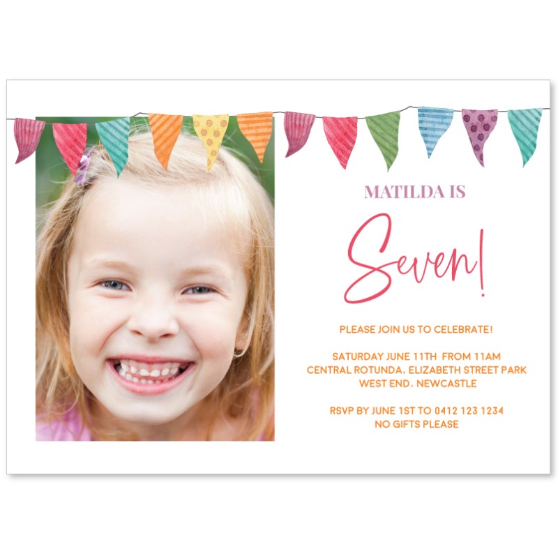 Editable Birthday Invitations ordered online in minutes - simply upload your photo and wording during the personalisation process and our designers will perfectly align your text. Printed onto quality cardstock and shipped quickly in Australia. Satisfaction Guaranteed.