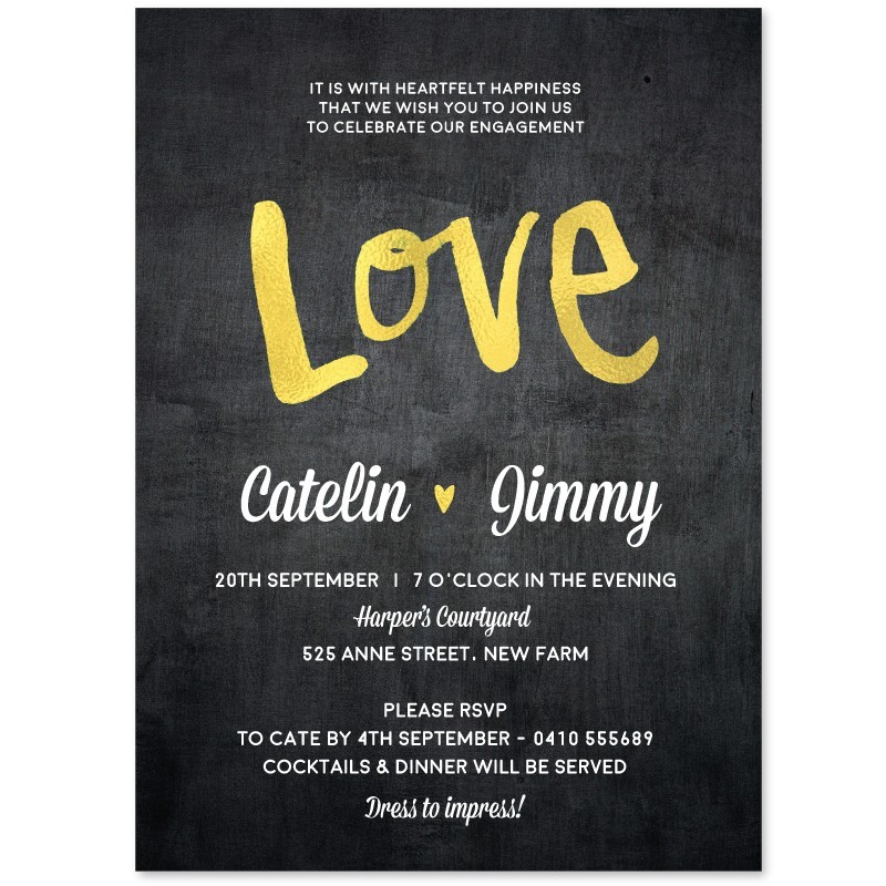 Gold Love Engagement Invitations