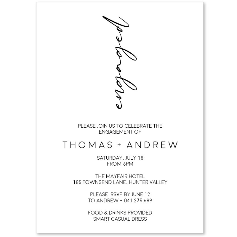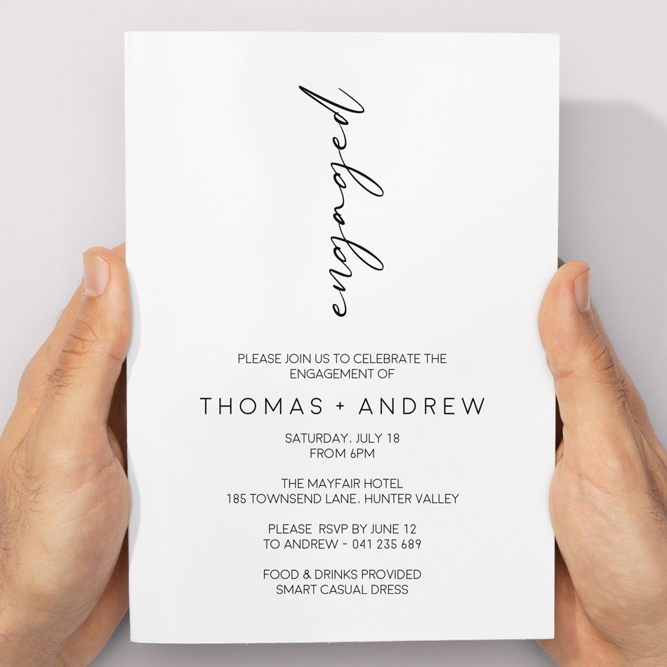 Modern Engagement Invitations customized to perfection by our team of designers. Satisfaction guaranteed and quick delivery! Easily personalise these Stunning Engagement Invitations online in minutes - they are sure to wow your guests!