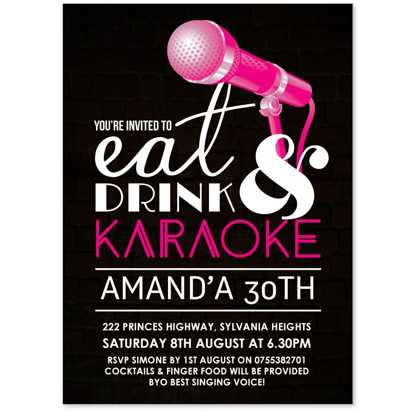 Easily personalise Karaoke Invitations online in minutes. These Invitations are sure to set the tone for your party!