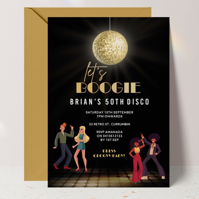Let's Boogie Disco Dancers Invitations
