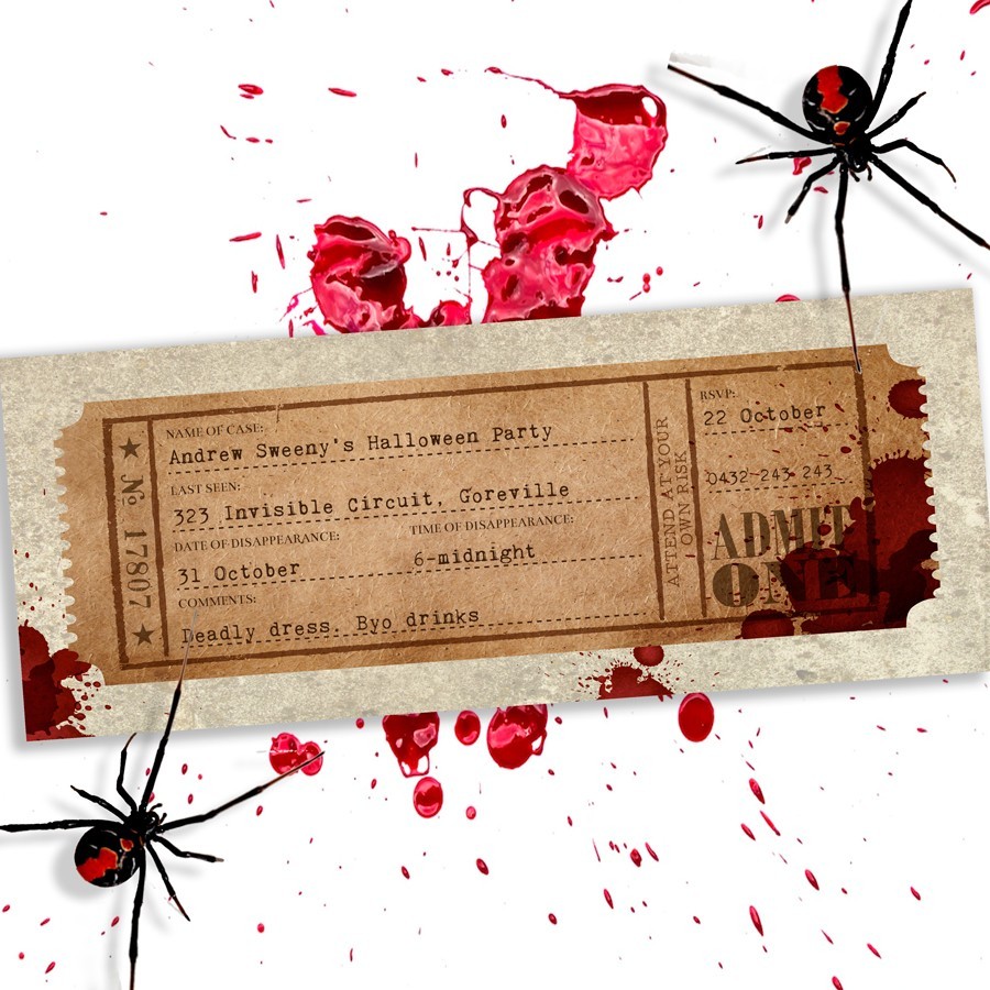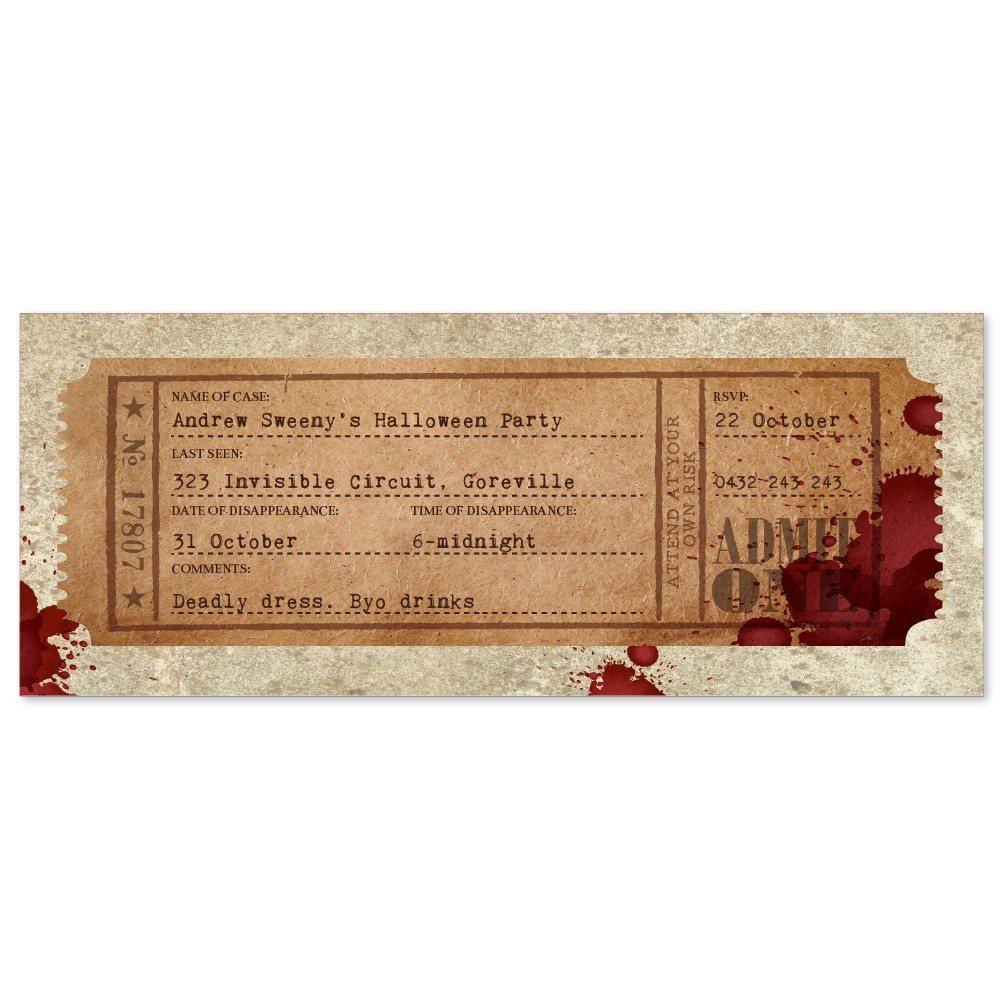 These printed Halloween Party Ticket Invitations are sure to impress your guests. Simply customise online with your wording and one of our graphic designers will perfect your text alignment before printing onto your choice of quality cardstock.