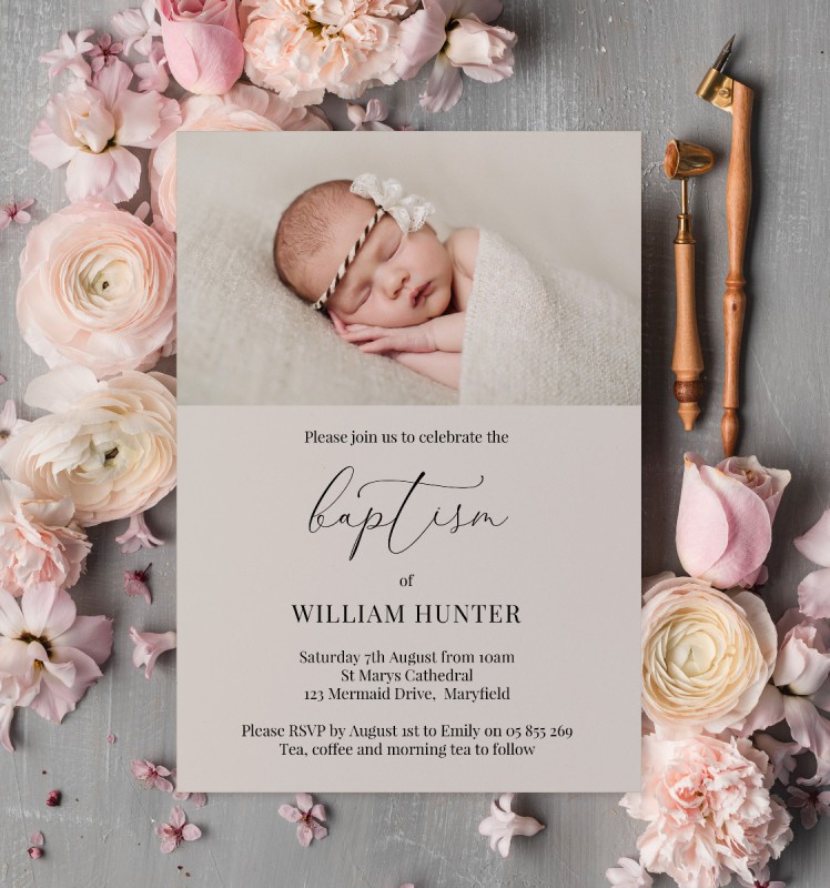 Neutral Love Baptism Invitations