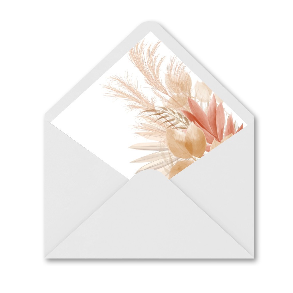 Sized perfectly to suit any of our A7 Envelopes, your liner will be sure to wow your guests when they open the envelope. Our printed envelope liners are professionally designed to match your Invitations and will be printed onto our premium 100gsm paper.