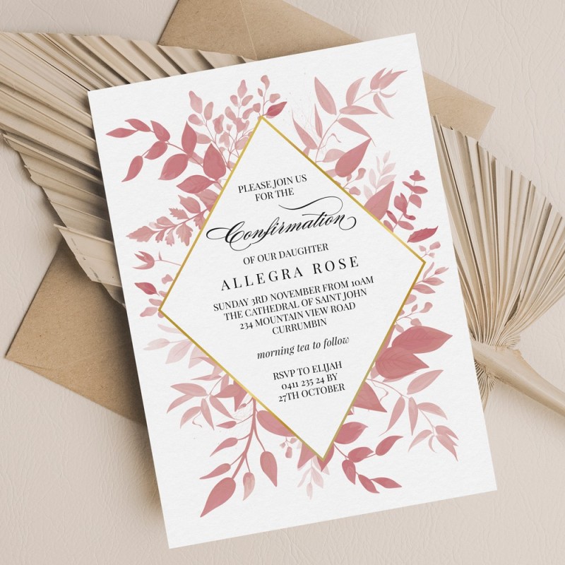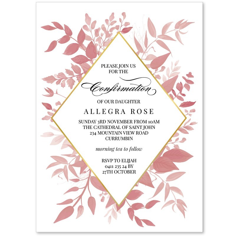 Pink Floral Confirmation Invitations