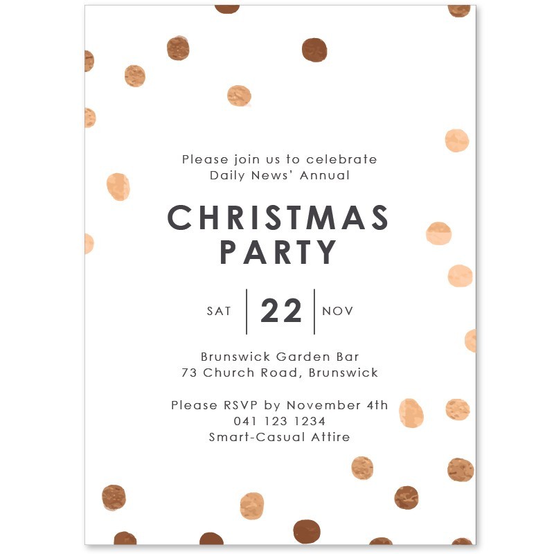 Use our unique online card editor to customise your Elegant Christmas Invitations online quickly. Your Invitation design will then be tweaked to perfection by our team of designers before printing onto high quality card. Featuring a printed rose gold texture these Invites look particularly stunning on our shimmer cardstock. We are proudly 100% Australian and offer quick delivery.