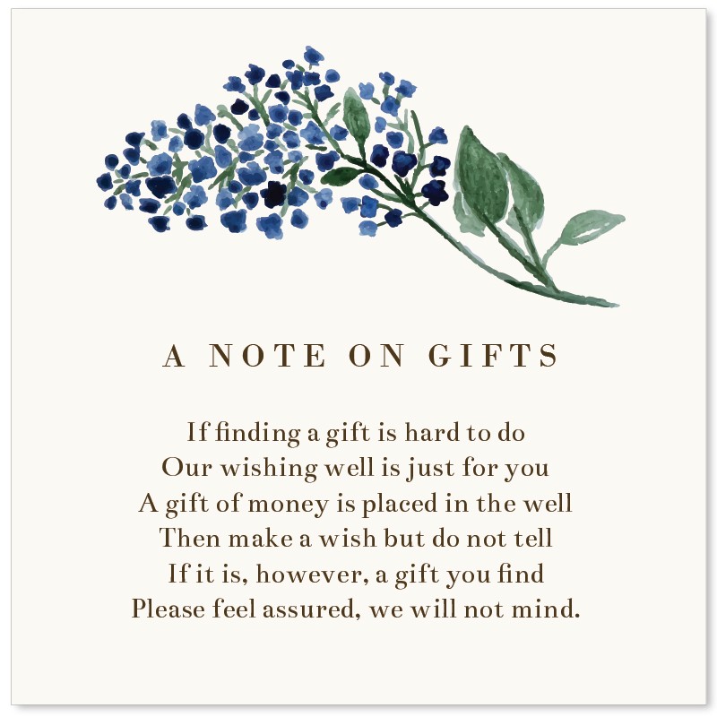 The easiest way to let your guests know about your gift preference is with a printed Paper Divas Wishing Well card. Our wishing wells can be personalised online in minutes with your choice of wording and can include information such as gift registries, gift ideas, travel fund details, or charity donations.