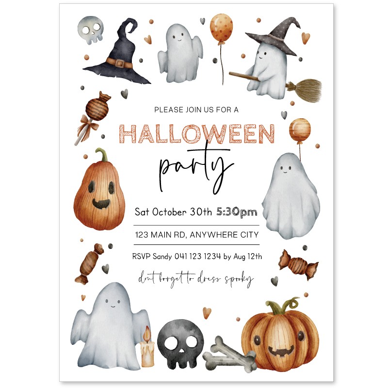 Cute Halloween Invitations personalised online in minutes to suit your scary event! We are proud to offer thick quality cardstocks and quick shipping for all of our Invitations at affordable prices.