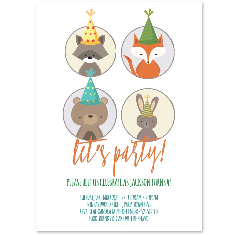 Cute Party Invitations suitable for a boy or girl. Customise online quickly and easily with your colours and text.