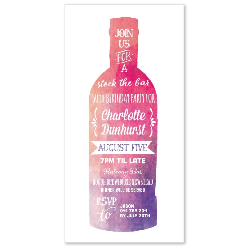 Organise an easy "stock the bar" event with these beautiful watercolour wine Invitations. Personalise online in minutes with your details.