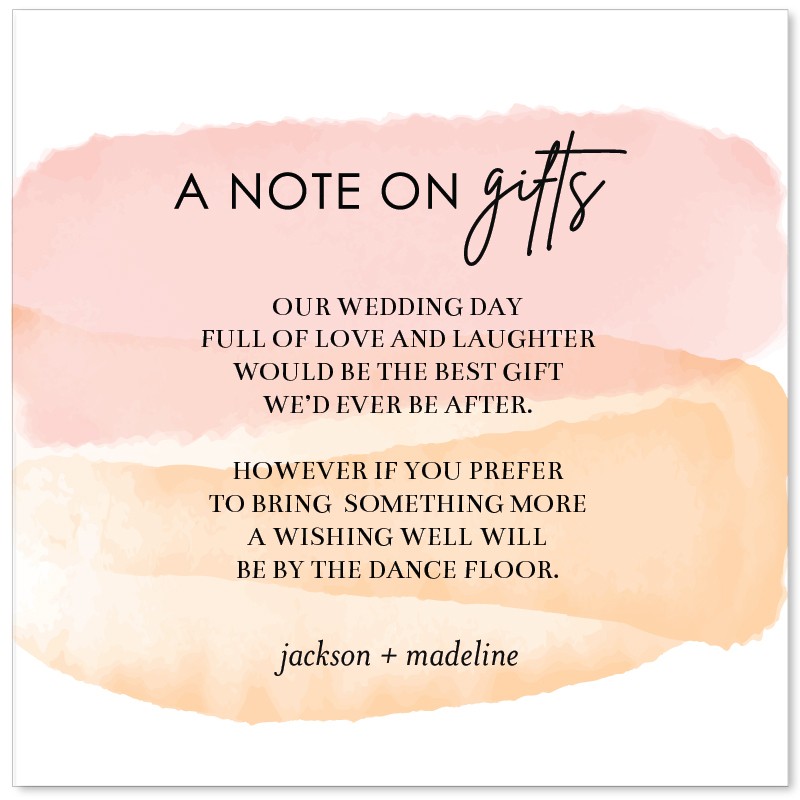 The easiest way to let your guests know about your gift preference is with a printed Paper Divas Wishing Well card. Our wishing wells can be personalised online in minutes with your choice of wording and can include information such as gift registries, gift ideas, travel fund details, or charity donations.
