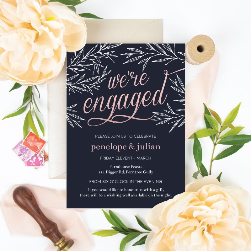 Your beautiful Engagement Invitations customized to perfection by our team of designers. Satisfaction guaranteed and quick delivery! Easily personalise these Stunning Engagement Invitations online in minutes - they are sure to wow your guests!