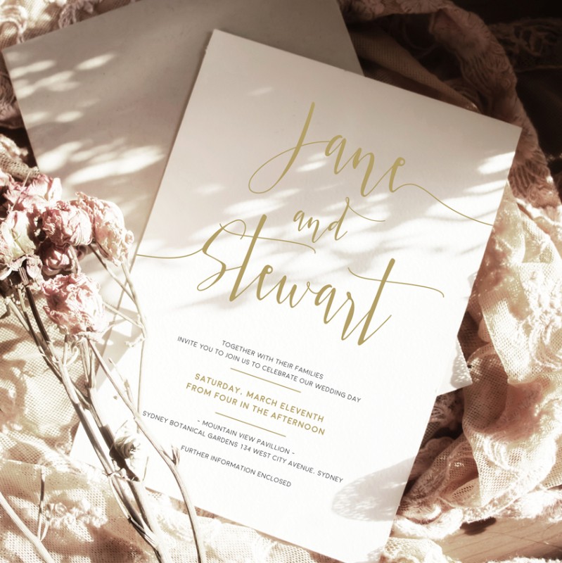 Please note that these Wedding Invitations are digitally printed on a high quality press NOT gold foil. Satisfaction guaranteed.