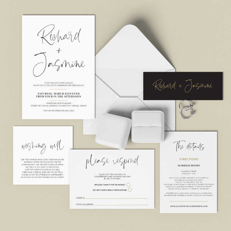Keep it simple by just ordering Invitations, or combine your Invites with matching enclosure cards, belly bands, patterned envelope liners and high quality metallic envelopes for a truly stunning coordinated stationery suite. Your Wedding is the most important occasion and deserves memorable Invitations at an unmatched price.