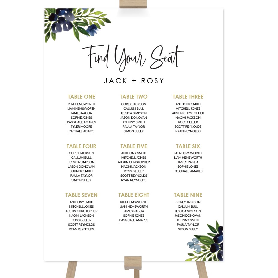 For the perfect Wedding Seating Chart we print direct onto our 3mm foam PVC board. It has a smooth surface finish and is more flexible in nature than corflute. It's the perfect board for Wedding Signage due to it's rigid but slightly flexible nature. Can be placed directly onto an easel without requiring framing.