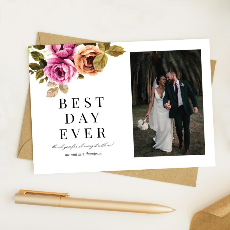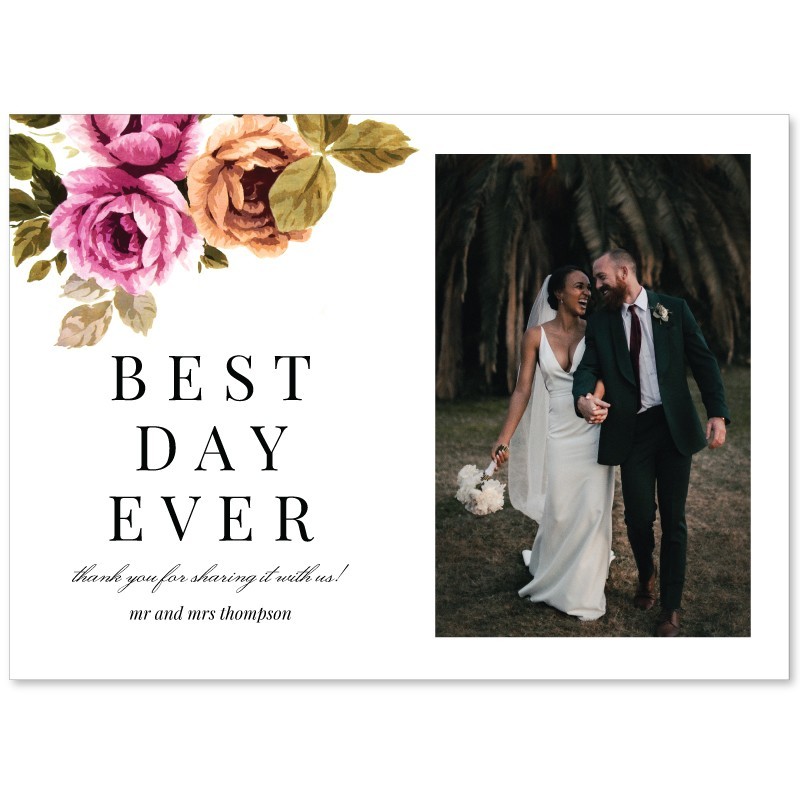 Beautiful Wedding Thank You Cards printed with your photo. Featuring a vintage floral design to perfectly compliment the rest of the Vintage Floral Wedding range. The reverse of the card is blank allowing you to enter a printed custom message or individually hand-write messages to your friends and family.